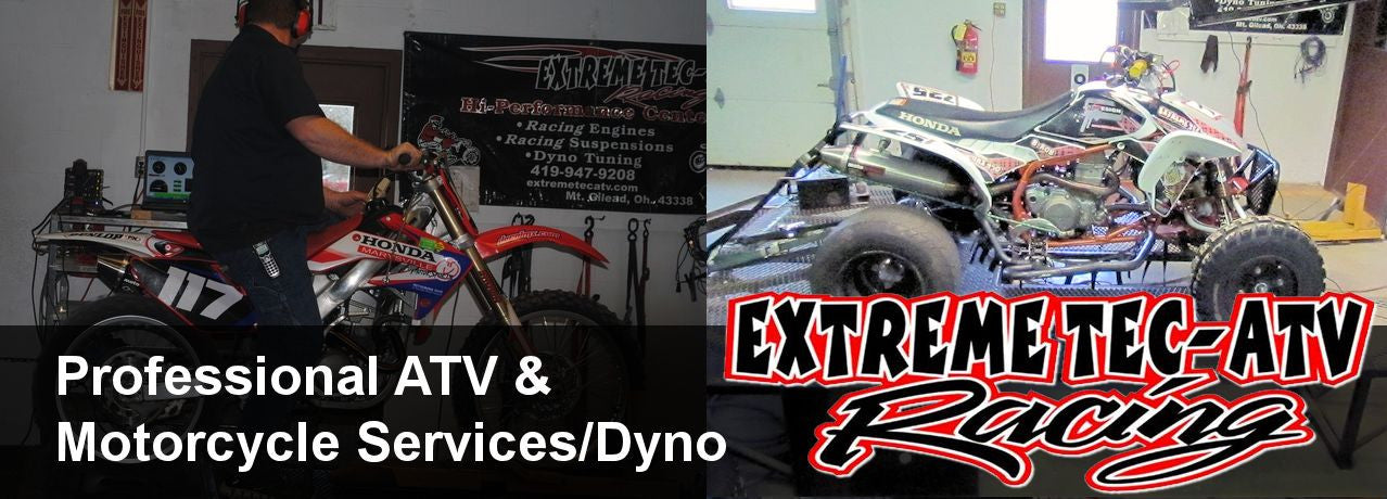 | "Extreme Tec is focused on the discovery of technology and techniques that allow out riders to go bigger, better & faster. We have built several national Championship winning engines and are poised to build yours for your championship run! In addition to our racer support we realize that racing isn't for everyone which is why we also focus on service & repair on atv's, Utv's & dirtbikes. Extreme Tec takes great pride in the customer satisfaction & support we have. To help us achieve this we have many modern tools & equipment in the motor cycle industry such as our Dyno Service allowing us to dial your machine in for it's optimal performance. I would like to thank each & everyone of my customer's for the support that they have given me in this business over the years and look forward to serving them in the years to come." -- Jeff Barker, Owner of Extreme Tec | "As a racer my expectations are high, and time is short. My race program would not have elevated like it has with out Extreme Tec Atv,or Jeff and Cori Barker." Sincerely, B-Rob # 725 |